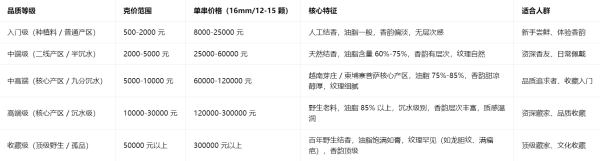 新手尝鲜:选 500-2000 元 / 克的种植料入门款,先体验香韵,避免盲目追高。